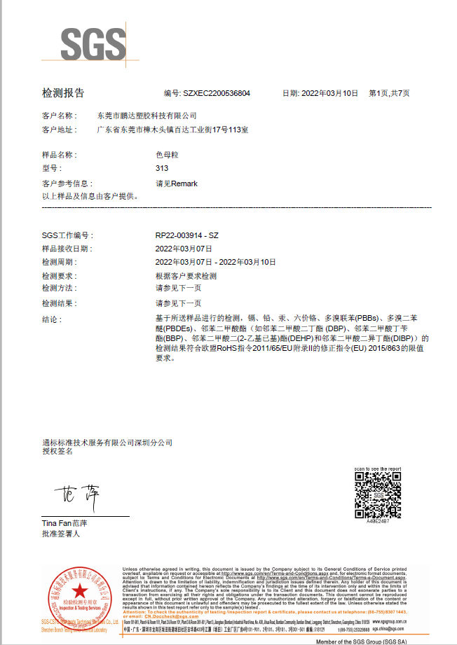 我們選擇產(chǎn)品的要求,主要是企業(yè)的服務、產(chǎn)品質量及產(chǎn)品性價比。鵬達塑膠科技有限公司擁有完善的服務體系和專業(yè)的配色技術,實力強,范圍廣,完全不用擔心產(chǎn)品品質問題及售后服務管理問題。